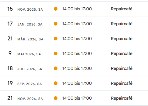 Im Repaircafé können defekte Kleingeräte vorbeigebracht und gleich repariert werden. Typische Geräte sind Bügeleisen, Radios, Radiowecker, Staubsauger, CD-Player, Stereoanlagen, Fön, Akkusauger. Auch Fahrräder können wir reparieren.
